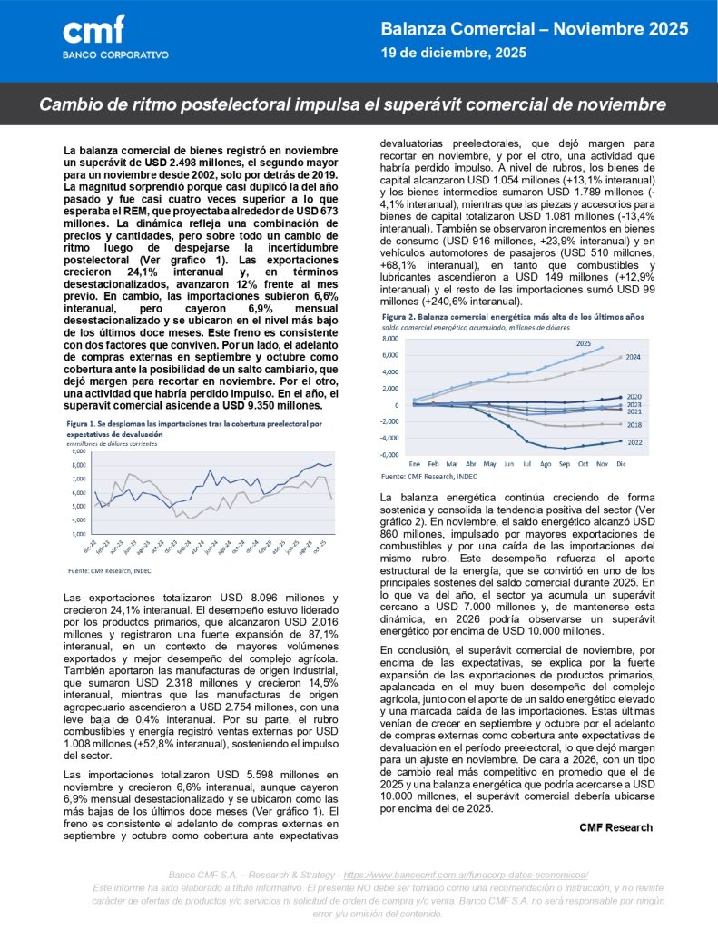 Te invitamos a leer el nuevo informe de Datos Económicos – Balanza Comercial de noviembre 2025 elaborado por nuestros Analistas de Research.