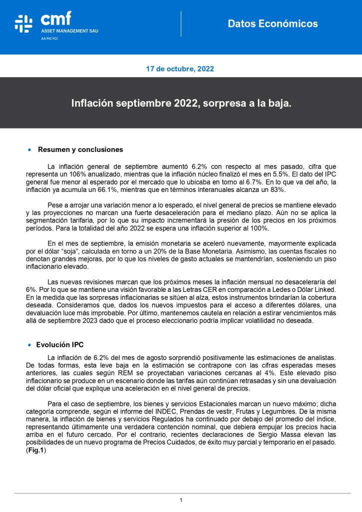 Inflación septiembre 2022, sorpresa a la bajaBy Bancocmf Prod / October 17, 2022 Te invitamos a leer el nuevo informe de Datos Económicos – Inflación Septiembre 2022 elaborado por nuestros Analistas de Research. DESCARGAR INFORME