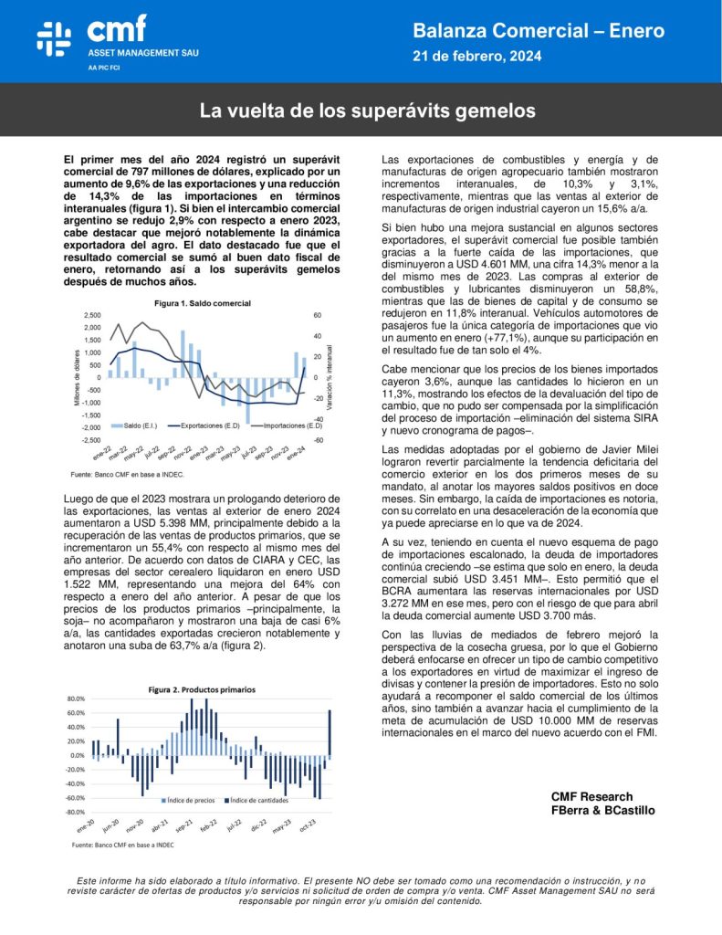 Te invitamos a leer el nuevo informe de Datos Económicos – Balanza Comercial de Enero 2024 elaborado por nuestros Analistas de Research.