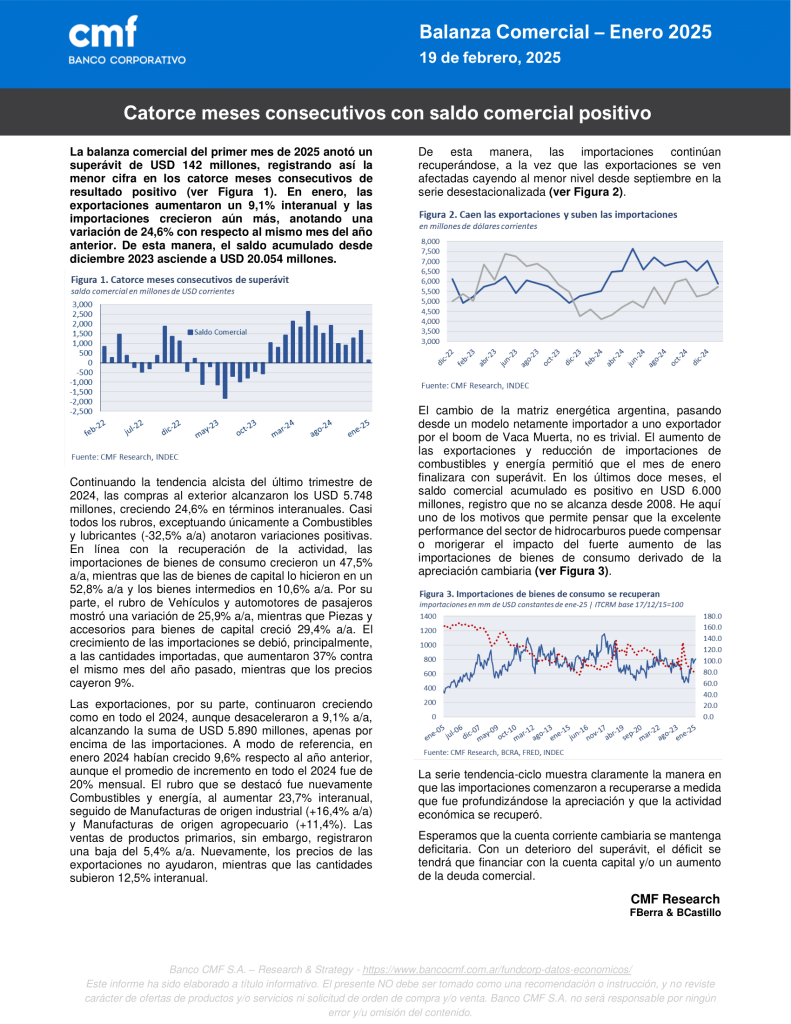 Se sostiene el superávit comercial, a pesar de fuerte incremento en importaciones marzo 20, 2025 Ver informe